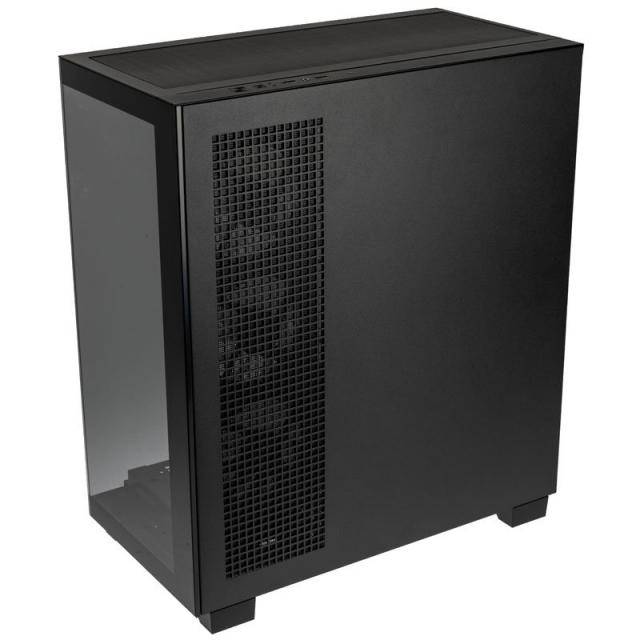 Класическото черно покритие служи като перфектна рамка и фон, докато стъклото от край до край предоставя панорамен изглед към интериора. С дизайн без необходимост от инструменти, страничният стъклен панел разполага с бързо освобождаване отзад, което улеснява достъпа до шасито за инсталация и ъпгрейди.