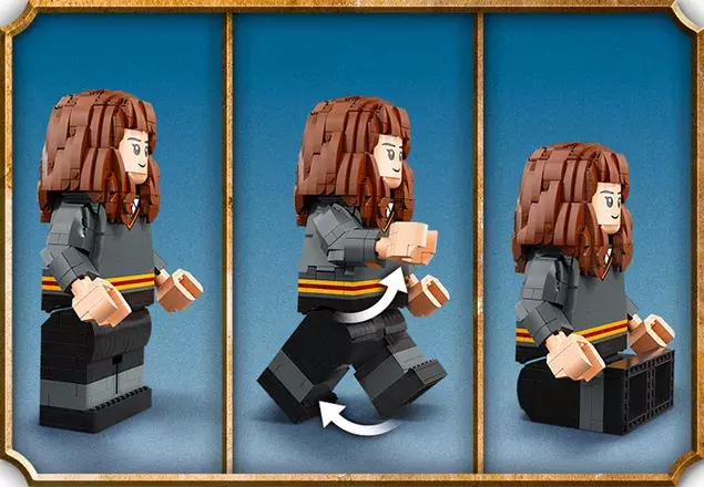 Kids can maximize the magical fun with these brick-built Harry Potter and Hermione Granger models. Both figures stand 10 in. (26 cm) tall and possess all the adjustability of the smaller LEGO minifigures: movable hand, leg and hip joints, plus a rotatable head for the Harry Potter figure. Harry has a removable, fabric robe and both models carry brick-built wands to help inspire magical stories for kids to play out. When the action stops, kids can put the 2 Hogwarts friends into a pose to create an amazing ‘Harry and Hermione’ display for their room. Individual sets of building instructions allow 2 builders to share the fun together.