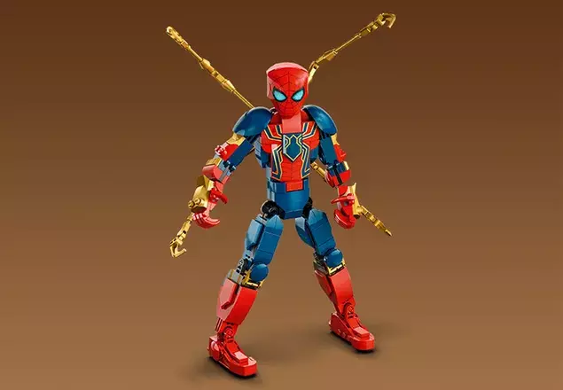 Buildable figure wears his high-tech Iron Spider-Man armor.