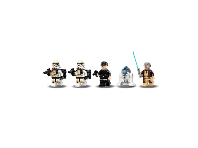 - Включва 4 мини фигурки: Obi-Wan Kenobi, Imperial Shuttle Pilot, Sandtrooper и Sandtrooper Squad Leader, плюс R2-D2!