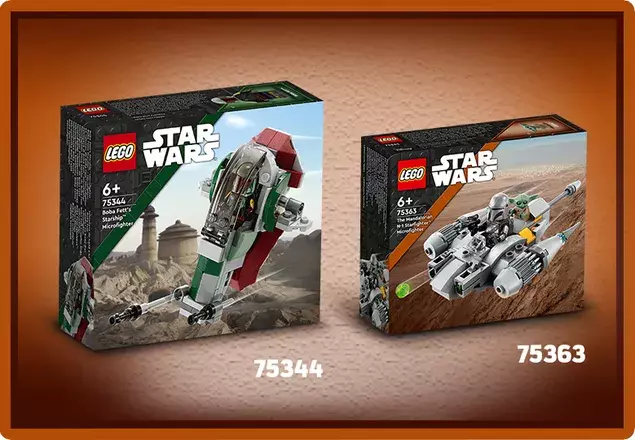 - Quick-build LEGO Star Wars Microfighter (75363) – Spark children’s creativity with a buildable microscale model of The Mandalorian’s N-1 Starfighter first seen in Star Wars: The Book of Boba Fett