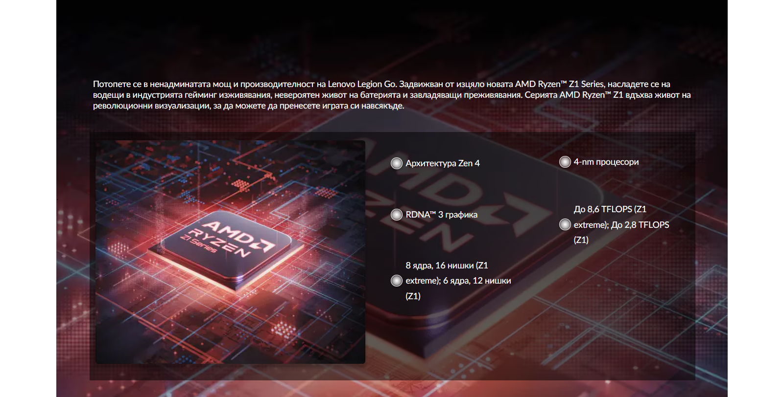 Джойстиците с hall ефект на Legion Go са с RGB осветление и изпреварват традиционните подобни решения. Кажете сбогом на джойстик дрифта и приветствайте издръжливото решение за управление с бърза реакция. Нашите разглобяеми контролери Legion TrueStrike са проектирани за удобство и прецизност, с функции като текстура против изплъзване, мапващи се контроли и вграден тракпад. Преминете плавно от компютърни към портативни игри, а за любителите на FPS се насладете на прецизен контрол с нашия уникален FPS режим с допълнителна основа за контролер. Благодарение на ергономичния ни дизайн играйте по-дълго, без дискомфорт. С Legion Go играйте като професионалист.