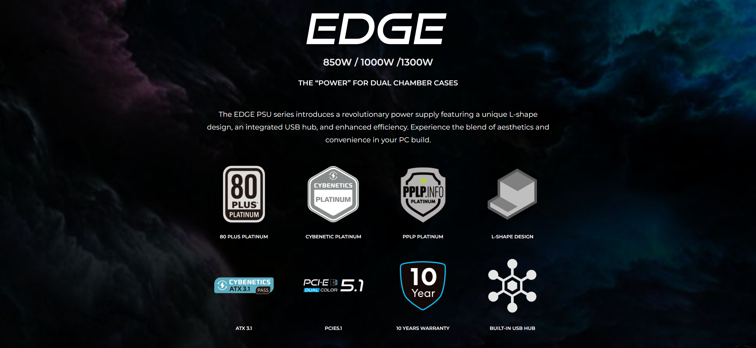 Engineered specifically for dual-chamber chassis such as the LIAN LI O11 series, the EDGE PSU’s L-shape design is ideal for vertical installation at the second chamber.