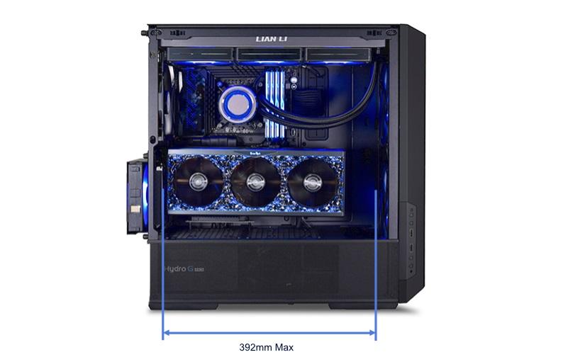 With enough room for graphics cards up to 392mm in length, and 180mm in height (for air cooling mode), the LANCOOL 216 is