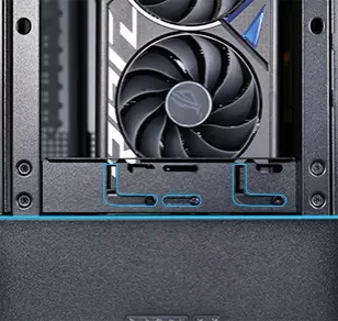 The GPU bracket is designed for vertical and horizontal adjustment to accommodate GPUs of different
