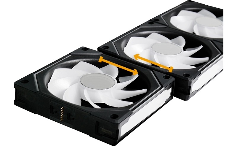 The 2nd generation of UNI FAN SL revisits the interlocking style that can connect up to 4 fans
