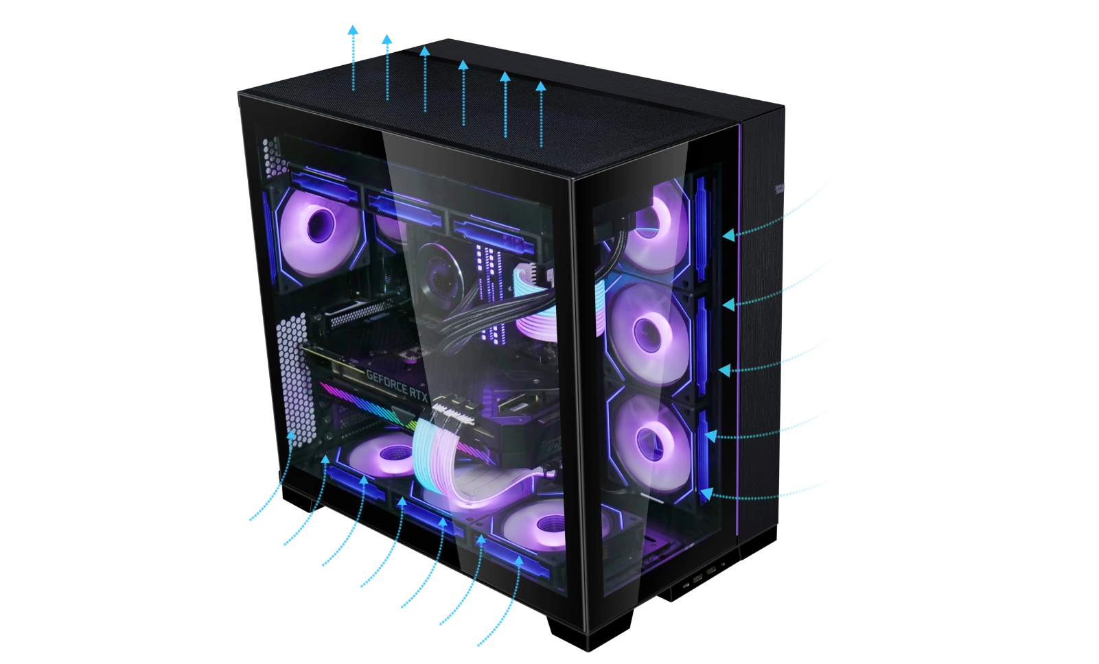 • Optimized for mounting at the bottom of the case or on top of the radiator