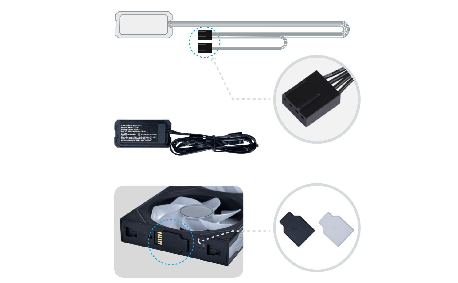 12V power delivery and BIOS fan detection. The receiver also has an additional PWM tail cable to ensure stable power.