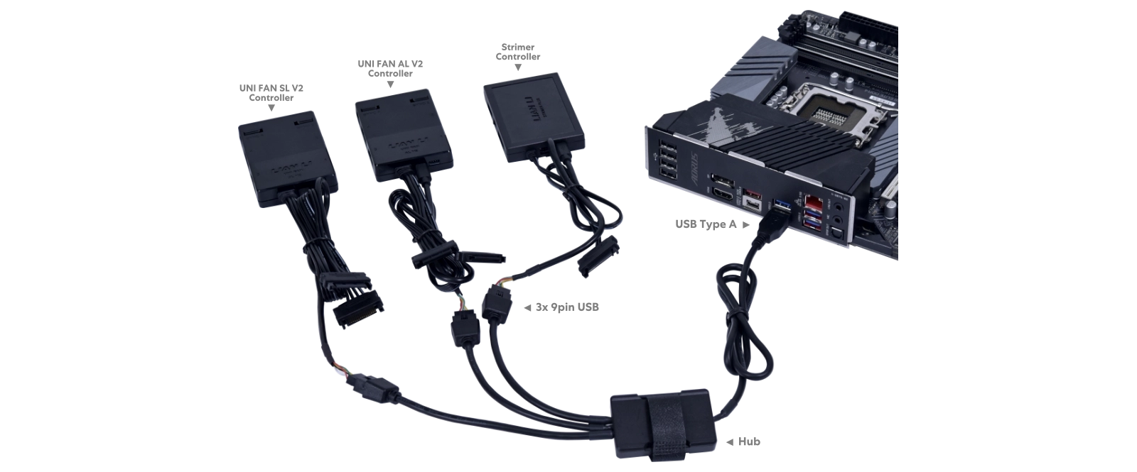 Lian Li USB 2.0 1-to-3 Hub (Type A Male Port)