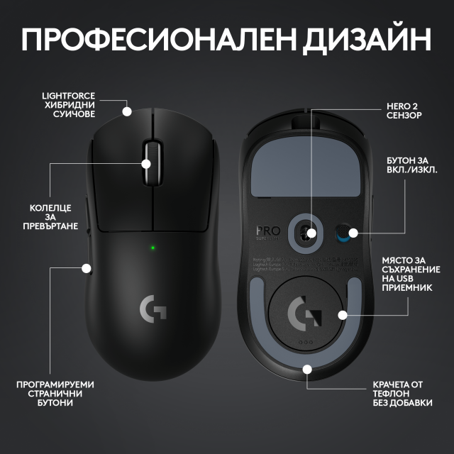 Най-популярната мишка за електронни спортове – усъвършенствана! PRO X SUPERLIGHT 2 включва 2K честота на предаване, USB-C, 95-часов живот на батерията и съвместимост с POWERPLAY безжично зареждане.