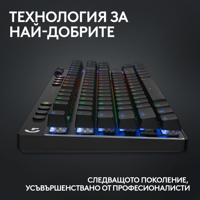 С програмируеми клавиши, RGB подсветка, LIGHTSYNC, бутон за гейминг режим и нова функция Game Mode Lock, както и медийни контроли и колелце за звук. PRO X TKL Ви позволява да контролирате напълно пътя към победата.