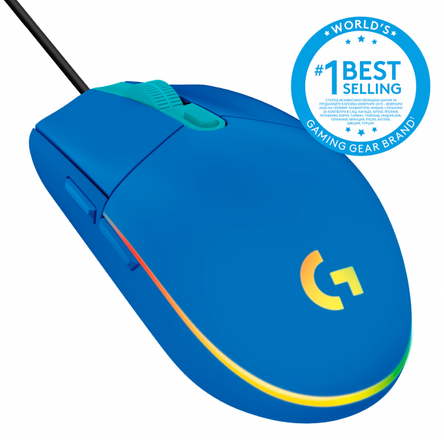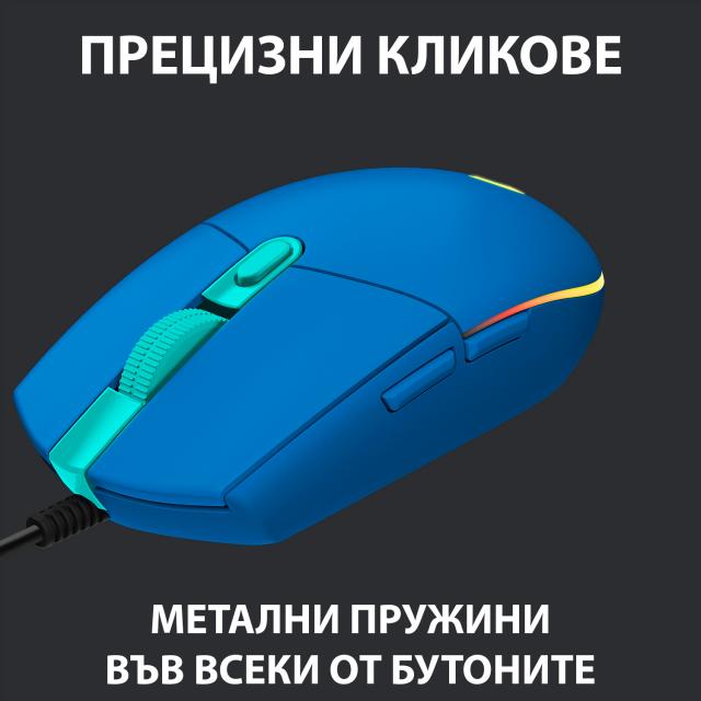 Геймърска мишка Logitech G102 LightSync, RGB, Оптична, Жична, USB, Син