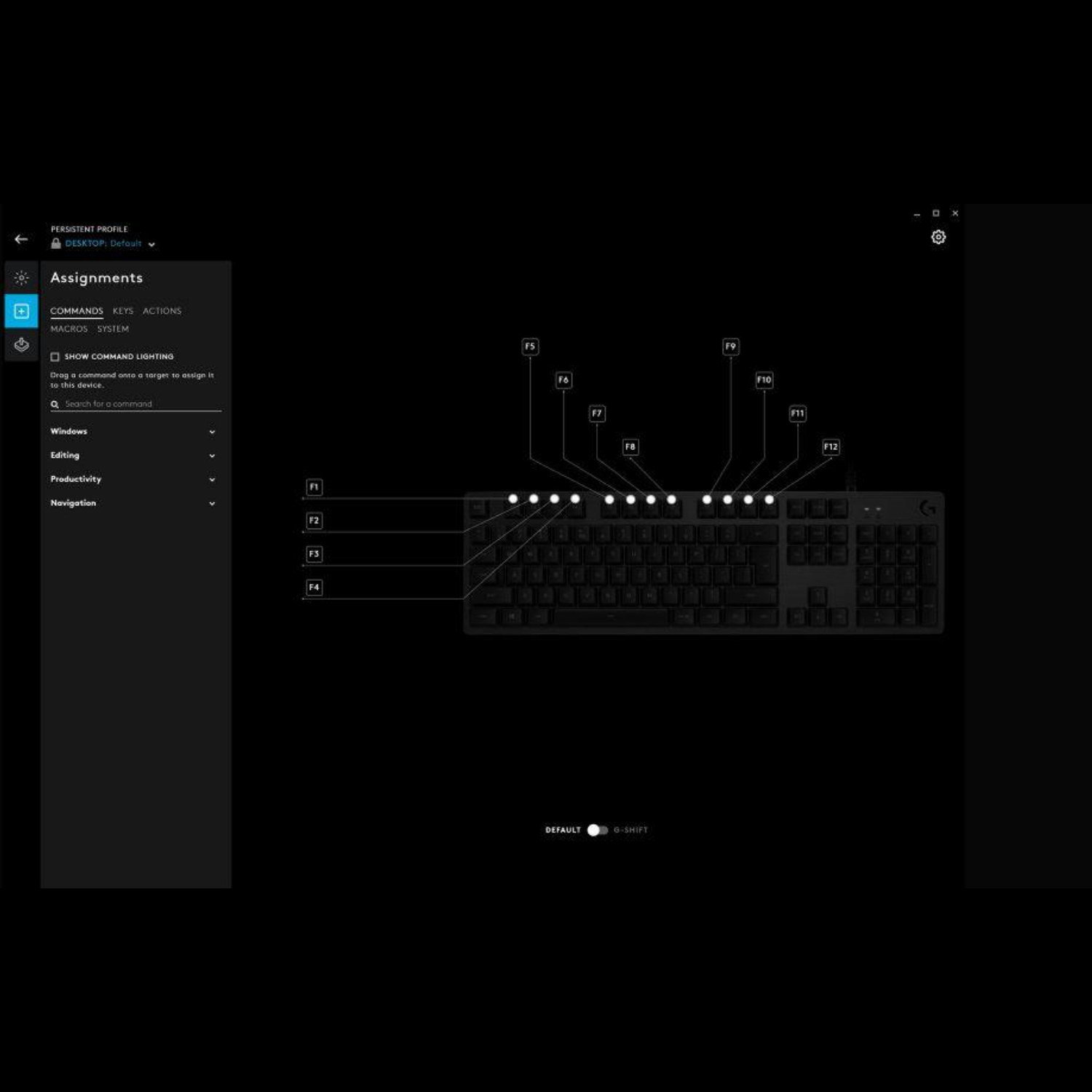 С Logitech G HUB може да програмирате функции или макроси, които да запишете на F1-F12 клавишите. За по-лесна игра.