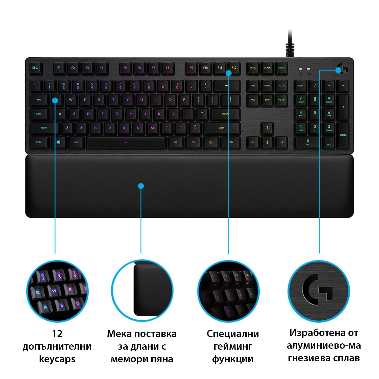 Геймърска механична клавиатура Logitech G513 Carbon RGB GX Blue Mechanical Switch