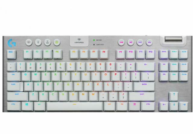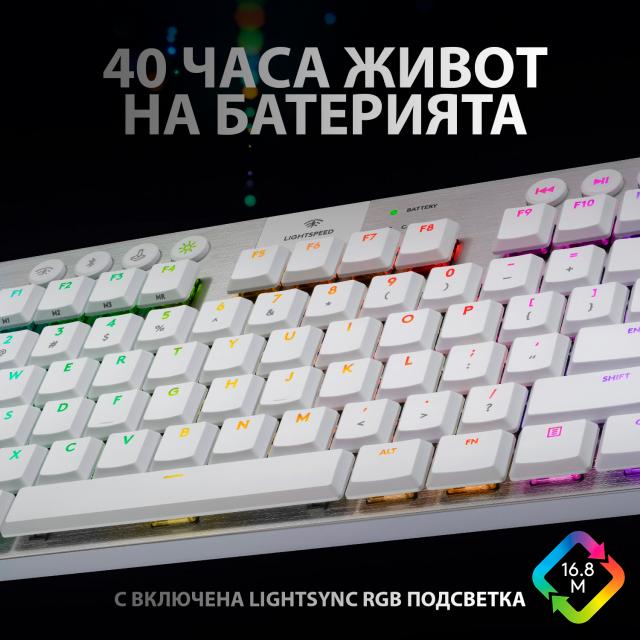 Безжична геймърска механична клавиатура Logitech, G915 TKL White Lightsync RGB, Tactile суичове