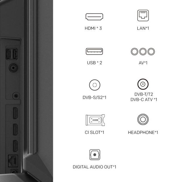 | Портове | 3.5мм Аудио жак, HDMI, USB-A, RJ45, Composite (RCA), SPDIF, Cl+, RF |