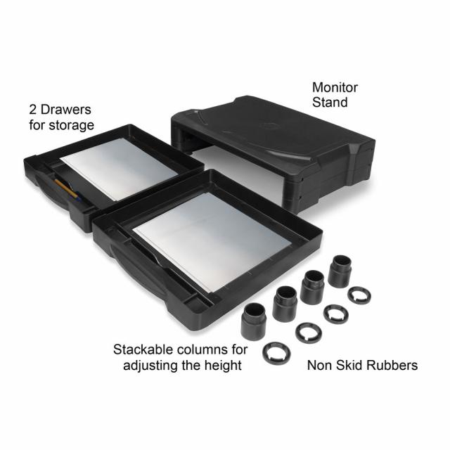 Стойка за монитор ACT AC8215, За бюро, с 2 чекмеджета, До 10 кг, Черна