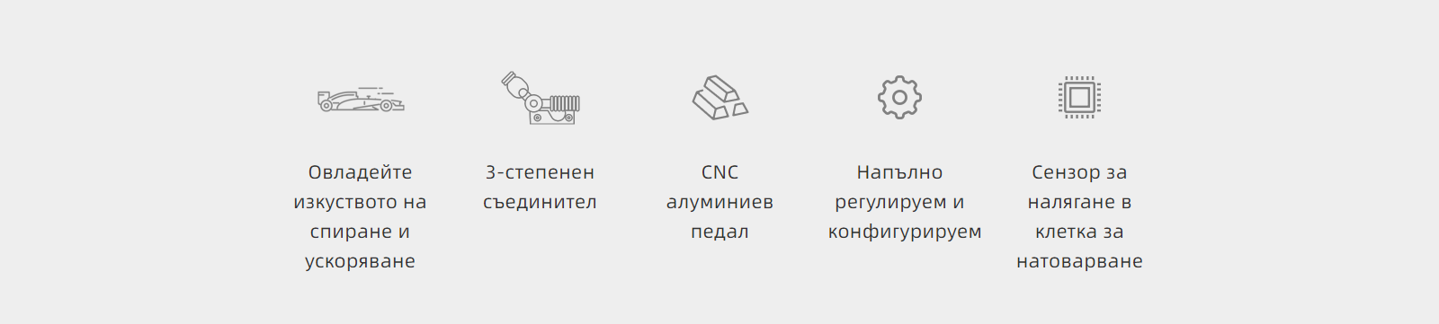 | Ход на педала | Регулируем | Тегло | 7.5 кг |