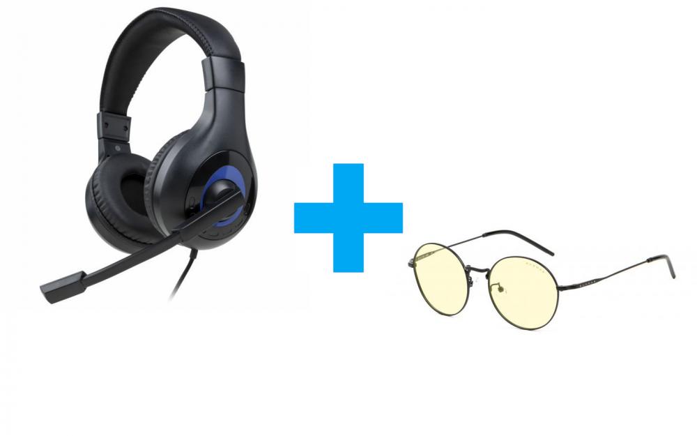 Комплект слушалки и компютърни очила Nacon Bigben PS5 Official Headset V1 Black + Gunnar Ellipse (Onyx, Amber, Gunnar-Focus)