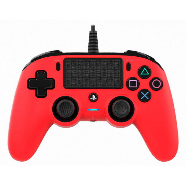 NACON's Wired Compact Controller is officially licensed for PS4™ consoles and boasts a range of essential features, including a touch pad, vibration motors and an LED player status indicator. It also includes action buttons with PlayStation® symbols and colours, as well as SHARE, OPTIONS and PS buttons.