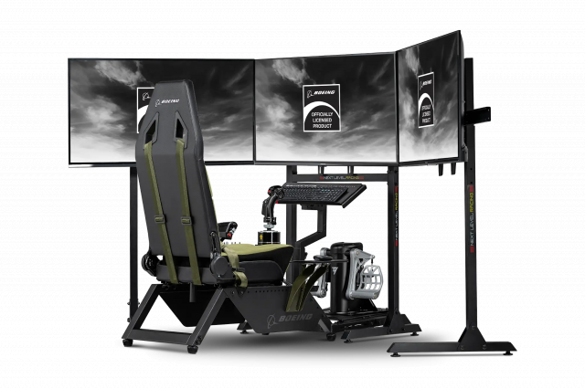 The Next Level Racing Flight Simulator Boeing Military Edition enables the Boeing community to interact with a brand they love and engage with the growing community of flight simulation. The seat is covered with a military inspired green canvas fabric to resemble a Boeing military flight cockpit and provide a comfortable flight experience during combat. For a visual brand experience, the Boeing logo is embroidered on the back of the flight seat, laser etched on the side panels, and military green highlights have been added. Finally, Next Level Racing has collaborated with Thrustmaster to ensure seamless compatibility with the Thrustmaster TCA Yoke Pack Boeing Edition for a Boeing inspired Commercial Flight deck experience. With the Boeing Edition cockpits, users can experience the different categories of aviation ranging from Commercial, Military, General Aviation, and Space.