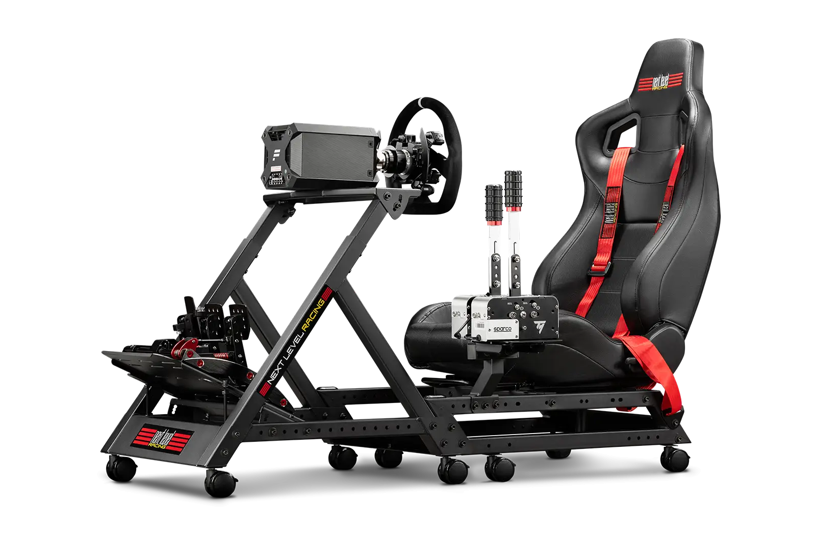 The GTtrack can easily be converted to a flight cockpit with the Next Level Racing Combat flight Pack. A design that is suited for any flight user that is wanting a change in scenery from the race tracks to explore the skies. The four point harness, creates an immersive flight experience for any flight enthusiast.