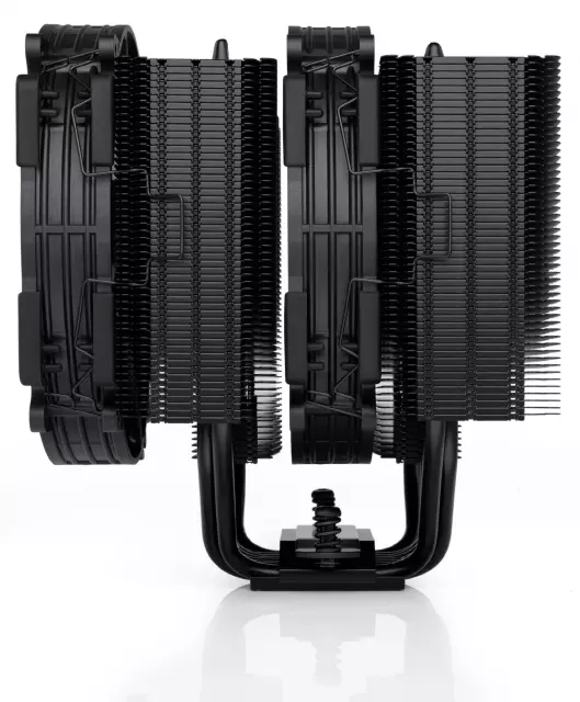 The NH-D15 G2 chromax.black is black from head to toe: Featuring a black heatsink with high thermal conductivity coating, black fans with black anti-vibration-pads, black fan clips and black mounting parts, it’s right at home in all-black builds and easy to integrate with other colour schemes.