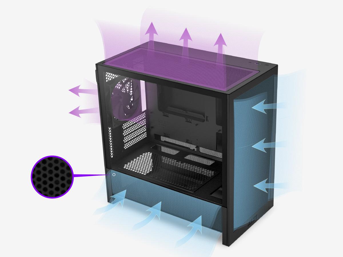 Ultra-fine mesh on the front, top, and sides enhances cooling while filtering dust.