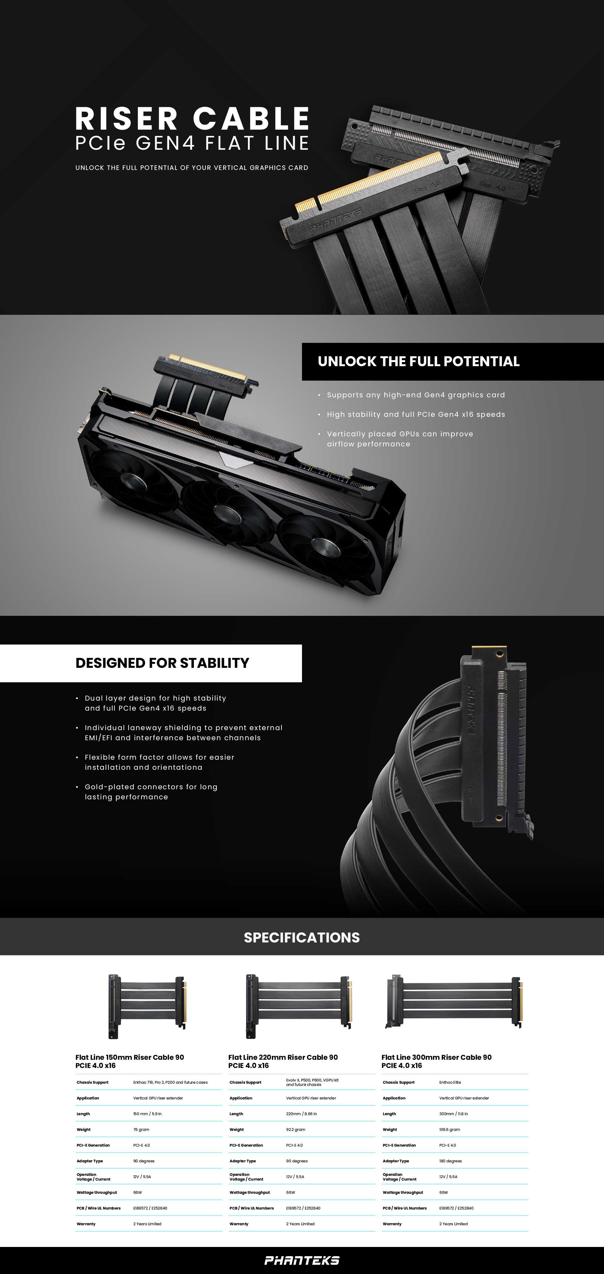 Phanteks Flat Line PCI-e Gen4 x16 Riser Cable отключва пълния потенциал на всяка графична карта Gen4 от висок клас. Двуслойният дизайн подобрява производителността и стабилността на сигналите с висока честотна лента, като гарантира, че системата работи стабилно и надеждно. Всяка отделна лента е защитена от EMI/EFI смущения, за да се предотвратят смущения между каналите за допълнително подобряване на целостта на сигнала.