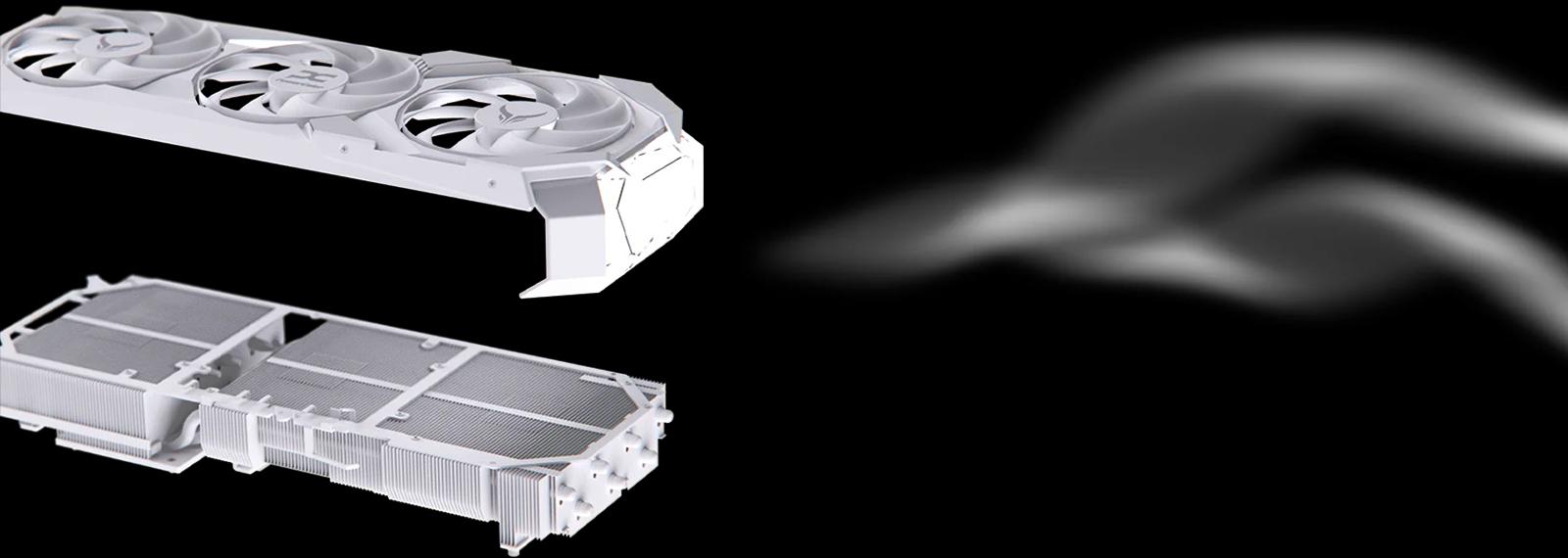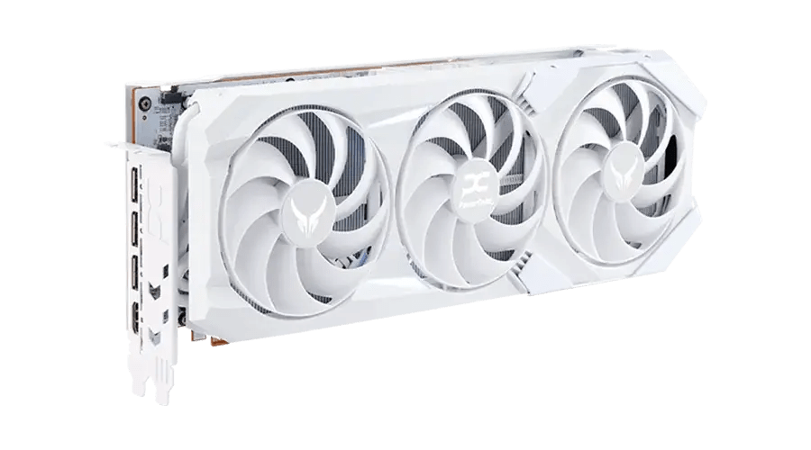 - Дизайн: Картата е изцяло в бял цвят, включително PCB, охлаждащия корпус, задната плоча и дори I/O щита. Включва и RGB елемент, наречен "Hellstone", който може да бъде персонализиран според вашата гейминг конфигурация.