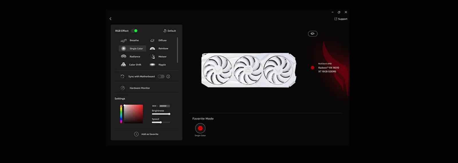 Offering a variety of effects, color options, and brightness settings to perfectly complement your entire build. Additionally, PowerColor Keystone offers seamless integration to manage your PowerColor peripherals, acting as the central hub for all your control needs.