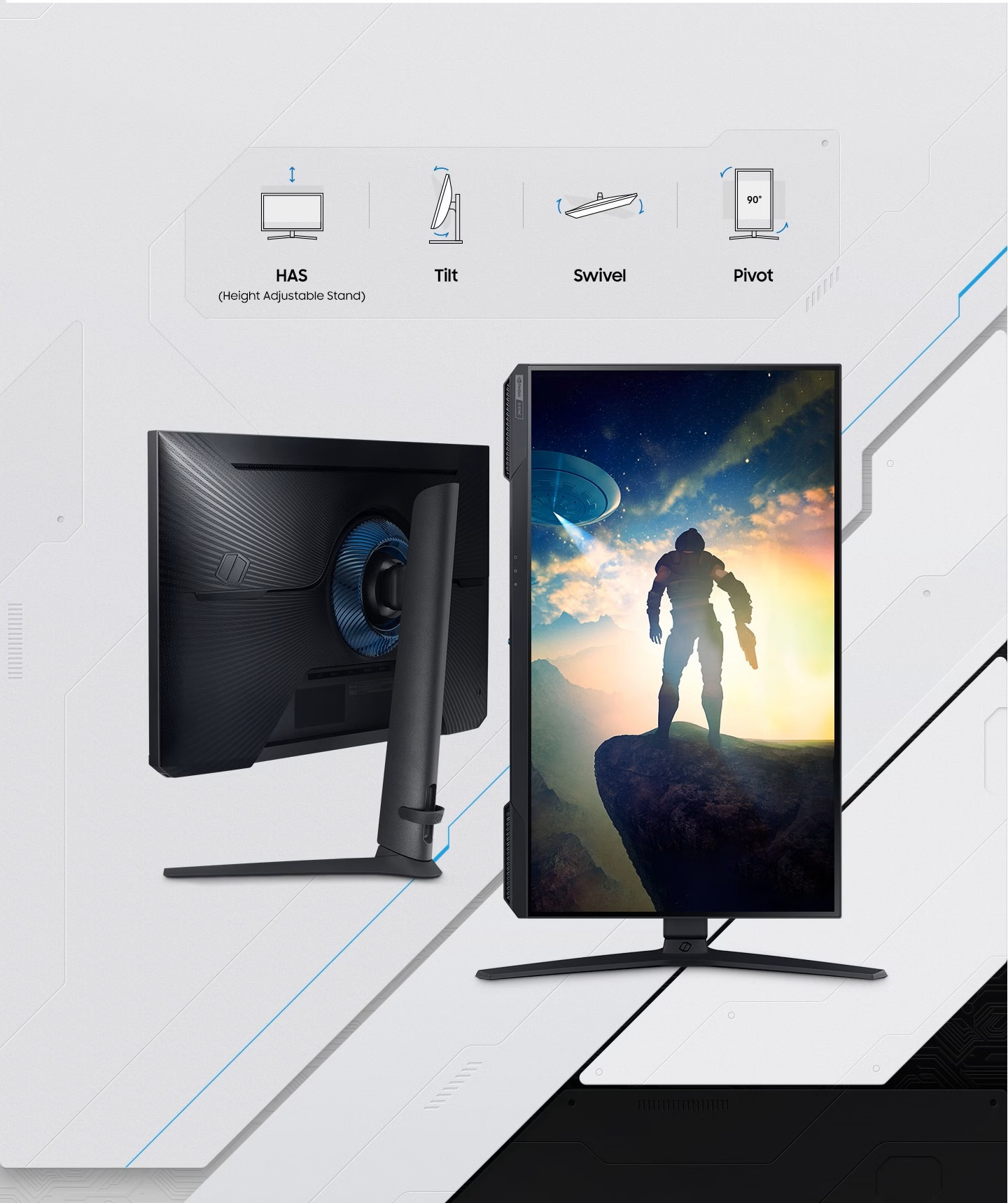 Открий твоята печелившата позиция. Завъртай, накланяй и регулирай височината на екрана, докато не настроиш всичко за победа.