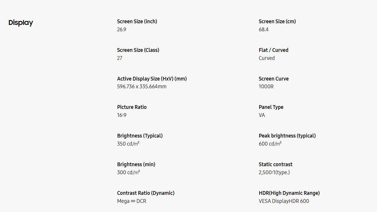 | HDR | VESA DisplayHDR 600 |