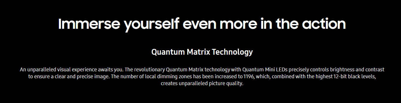 | HDR(High Dynamic Range) | Quantum HDR 2000 | Mini LED Local Dimming | Yes (1,196 zones) |