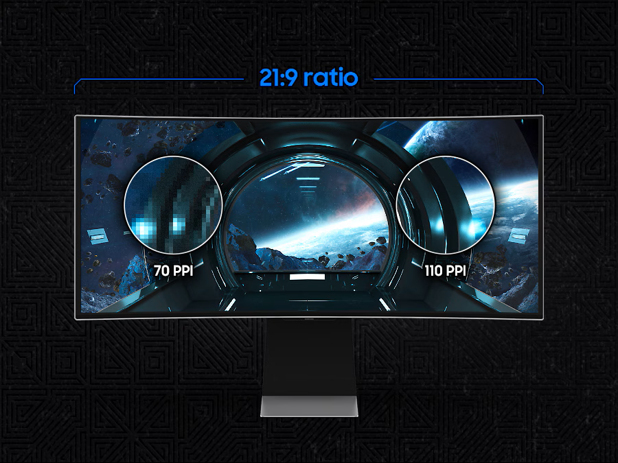 Не пропускай нито един детайл, дори и на по-голям екран. 34-инчовият 21:9 Ultra WQHD дисплей със 110 пиксела на инч ти гарантира, че виждаш всеки малък, но важен детайл със зашеметяваща яснота.