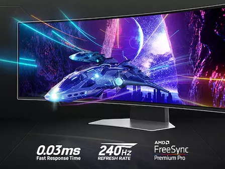 С впечатляващо време за реакция от 0,03 мсек и дисплей с честота на опресняване 240Hz, реагираш на всяко движение на враговете си по-бързо от всякога на най-бързия монитор Odyssey досега.