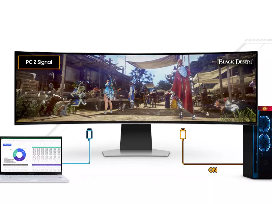 Потопи се в панорамни гледки49-инчов Dual QHD екранСуперултраширокият дисплей с широчина колкото два QHD монитора ти предоставя необходимото пространство, за да видиш всички детайли от картината. Извивката 1000R е съобразена с особеностите на човешкото око, за да запълни полезрението ти и да влезеш в кожата на твоя герой. |
