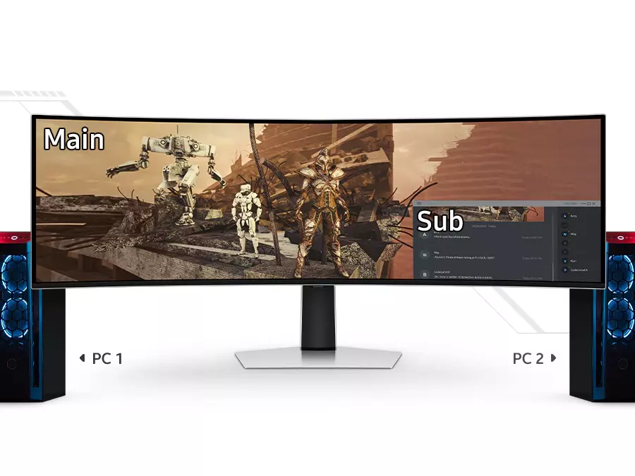 The immersive experienceA curved 49" screen in 32:9 wraps around to immerse |