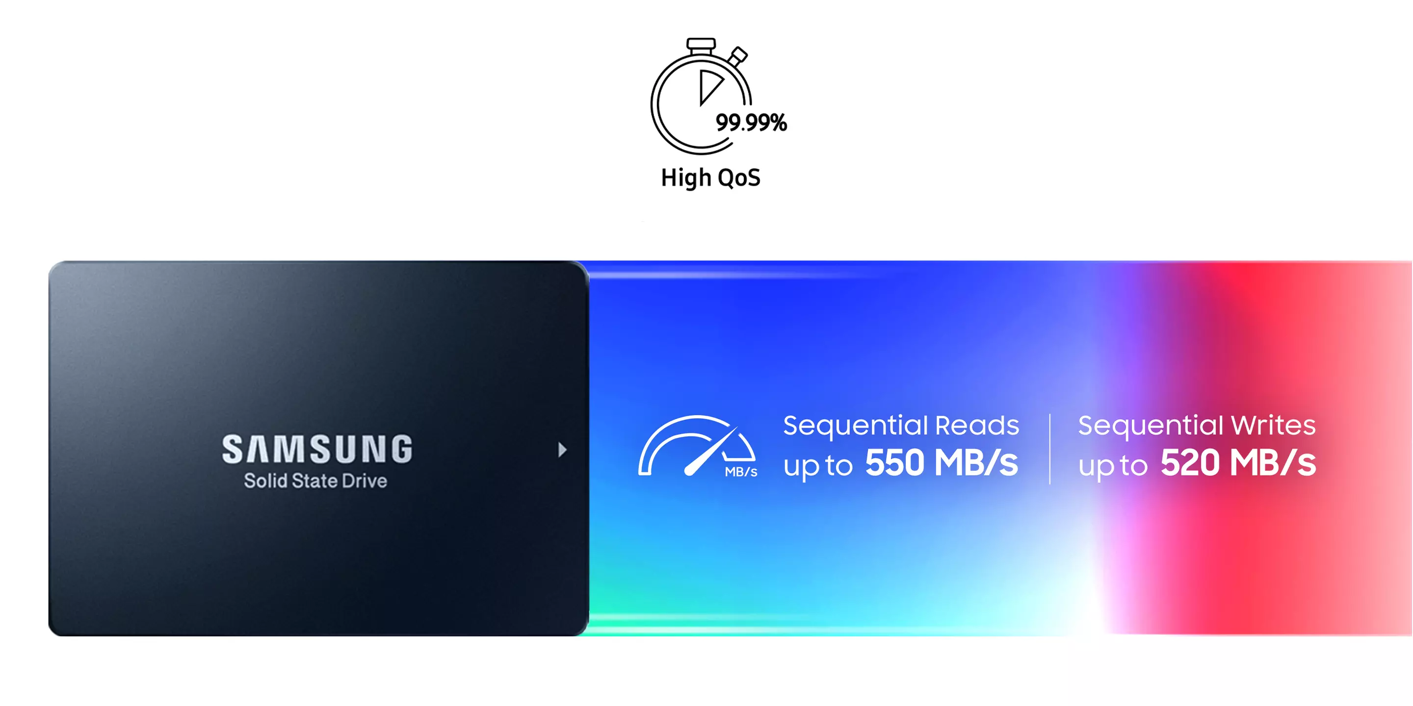 Experience the superior SSD quality and reliability of in-house production using Samsung built components. Empower your 24/7 business to run faster, more efficiently, and at reduced costs with world-class dependability with a limited 5-year warranty or 1.0 DWPD