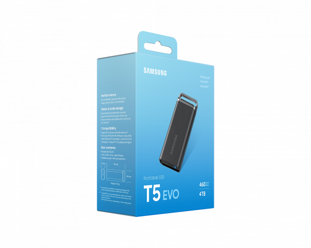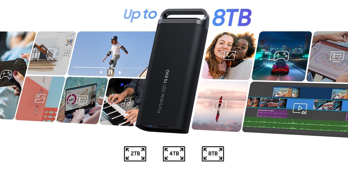 Преносимият SSD диск T5 EVO на Samsung се предлага с голям капацитет за съхранение до 8TB, който е подходящ за широк спектър от
