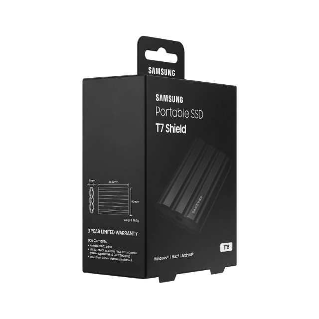 Външен SSD Samsung T7 Shield, 1TB USB-C, Черен