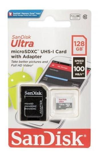 Карта памет SANDISK Ultra microSDXC UHS-I, 128GB, Class 10, 100Mb/s, Адаптер
