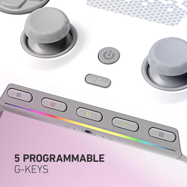 - G-Keys за твоите макроси: 5 допълнителни бутона под палците ти, които можеш да програмираш за всичко – от смяна на музиката до сложни команди в Discord или стрийминг софтуер.