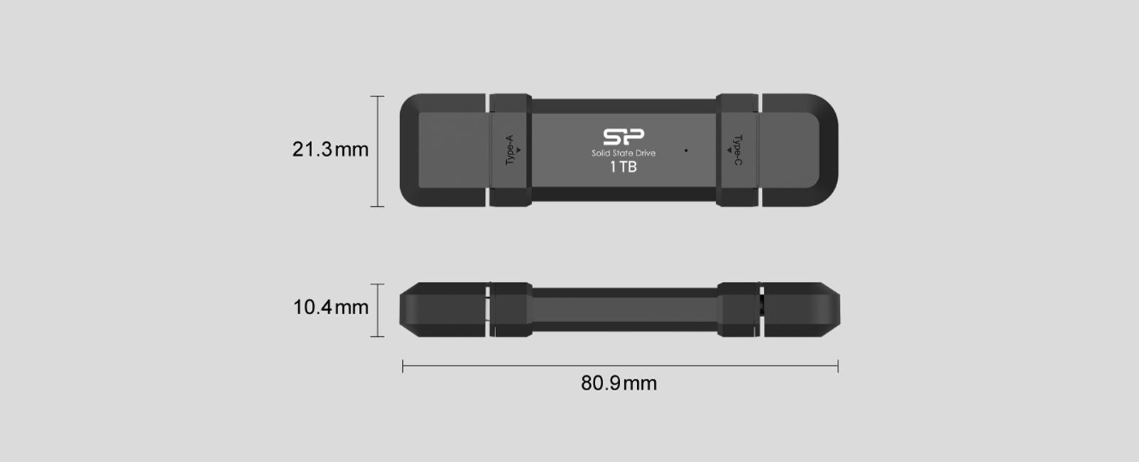 *2-in-1 portable SSD with a reversible USB Type-C and a traditional USB Type-A connector