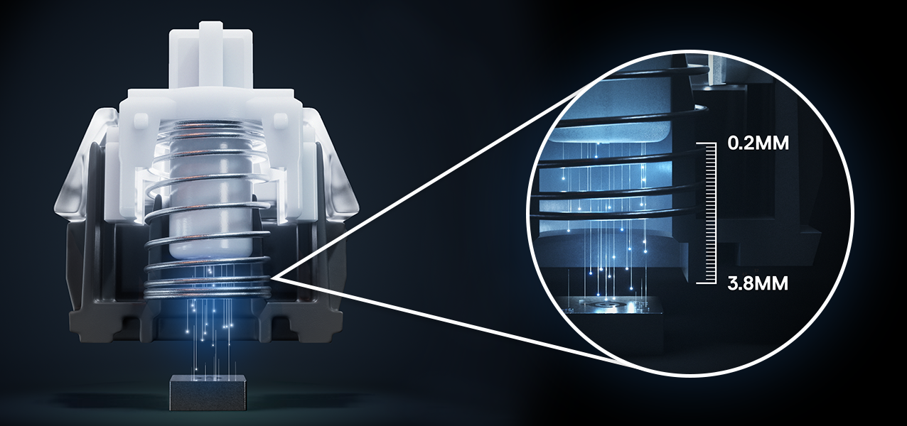 От бойното поле до работното ти бюро - бъди победител с най-бързата клавиатура в света. Доминирай конкуренцията, благодарение на суичовете, които реагират 11 пъти по-бързо и имат 10 пъти по-бързо задействане. Най-съвременните магнитни сензори осигуряват почти мигновена реакция за желаната от теб скорост.