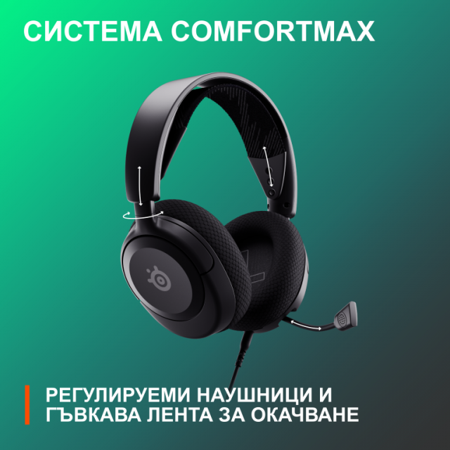 - Регулириеми за перфектно прилягане - Системата ComfortMAX включва регулируеми по височина, въртящи се наушници с възглавнички от мемори пяна. Олекотеният дизайн ти осигурява комфорт, независимо колко дълго играеш.