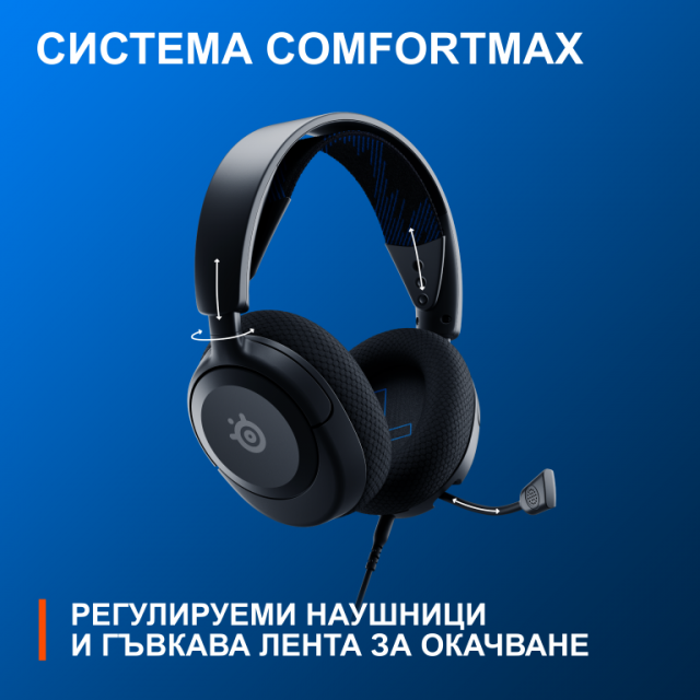 - Регулируеми за перфектно прилягане - Системата ComfortMAX включва регулируеми по височина, въртящи се наушници с възглавнички от мемори пяна. Олекотеният дизайн ти осигурява комфорт, независимо колко дълго играеш.