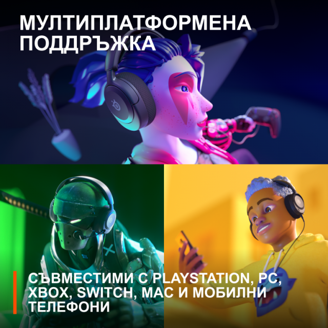 Твоите Arctis Nova 1Р работят с много гейминг платформи (PlayStation, PC, Mac, Xbox или Switch) благодарение на универсалният 3,5-милиметров жак. Свържи се в движение и с мобилното си устройство.