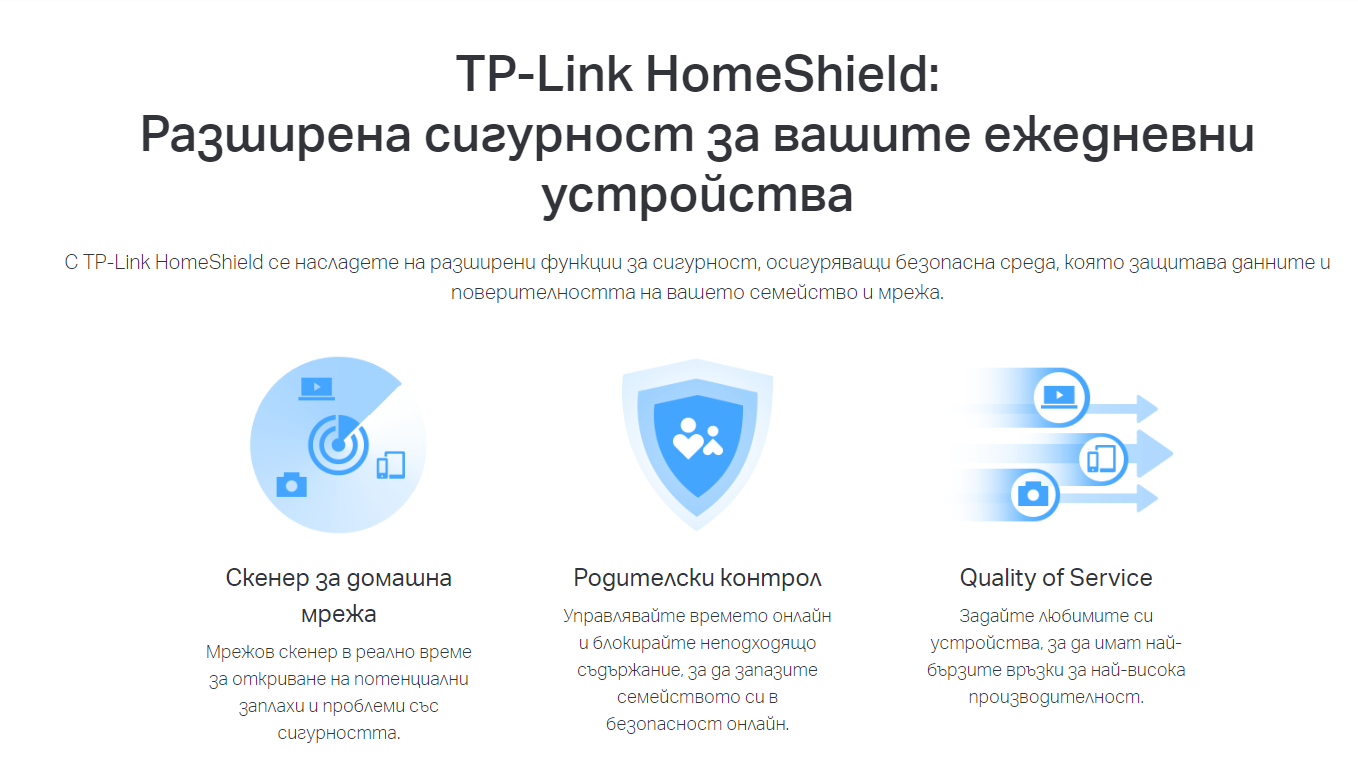 - TP-Link HomeShield—Подобрената сигурност защитава срещу най-новите кибер заплахи
