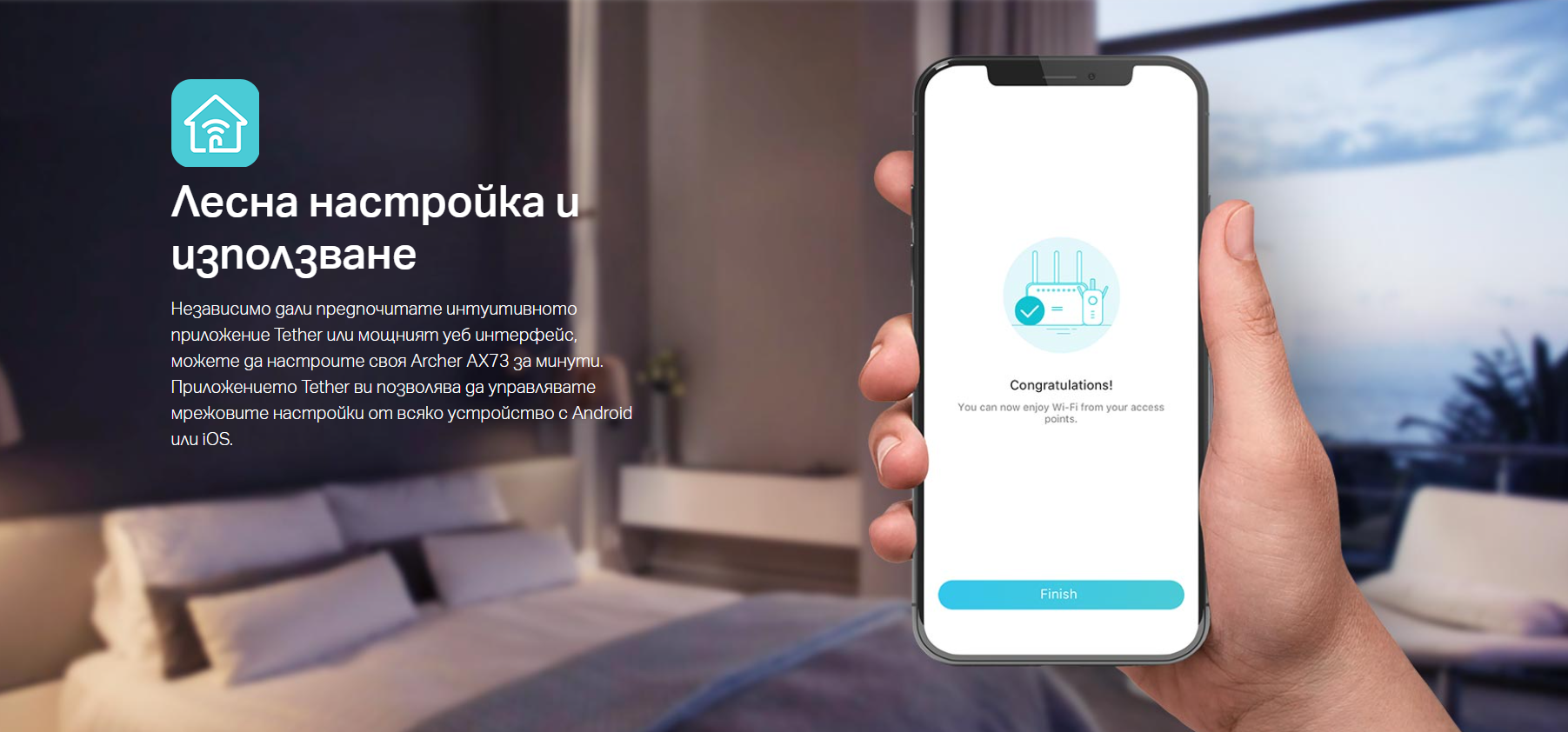 Безжичен рутер TP-Link Archer AX73, AX5400 двулентов Gigabit Wi-Fi 6 с OneMesh технология
